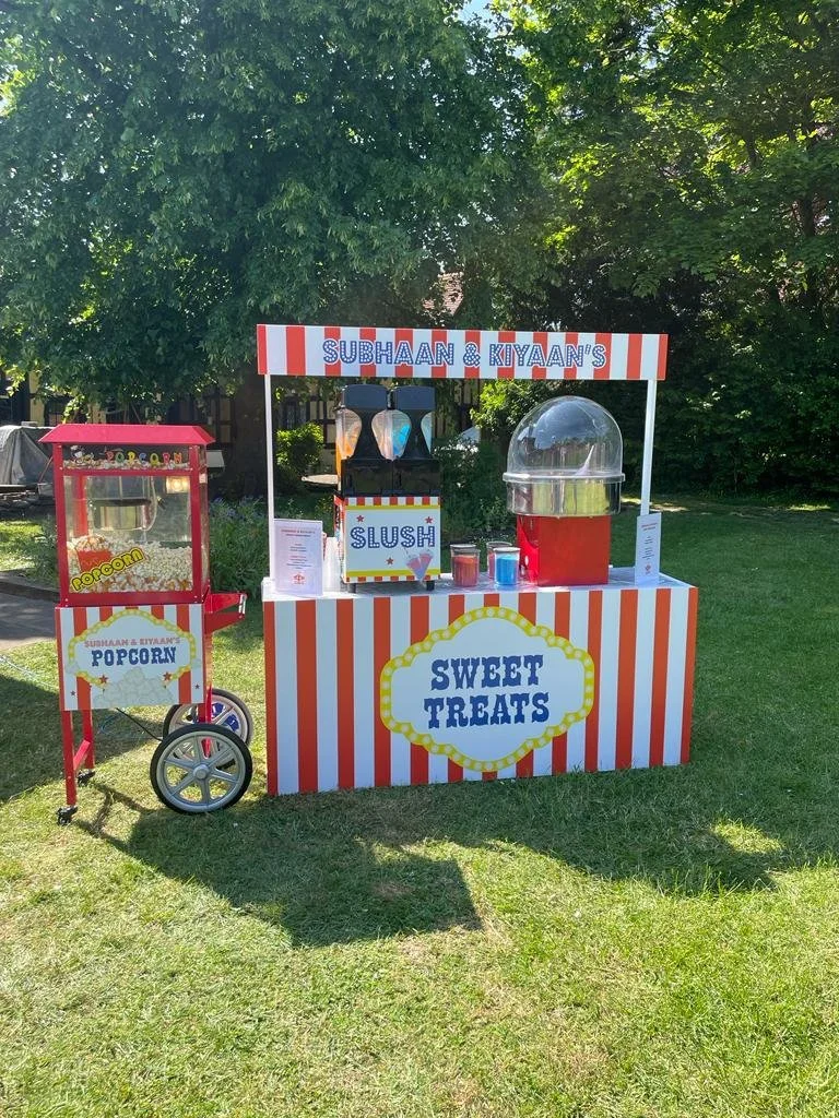 Hot dogs, popcorn, candy floss, waffles and more - fully staffed food stands for parties, schools, weddings and corporate events, delivered with a fun and professional setup.